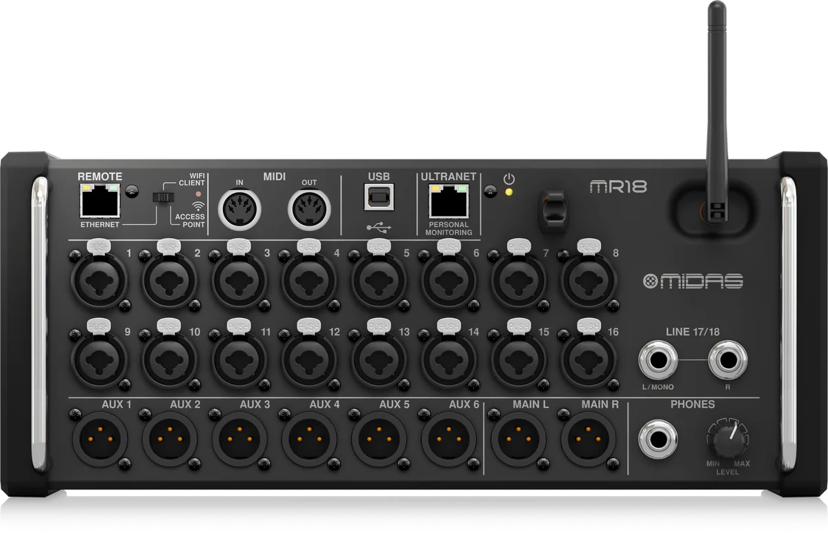 The Midas M32 completely redefined what is possible from a digital mixer – and thousands of users are enjoying the results. Now that technology has been incorporated into the small but powerful MR18 rack-mountable mixer, which will forever change the way you record and the way you play live music.